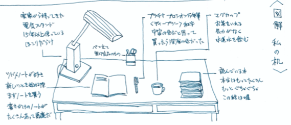 これは<図解 私の机>というコーナーで、その名の通り私の机を図解したものだ。